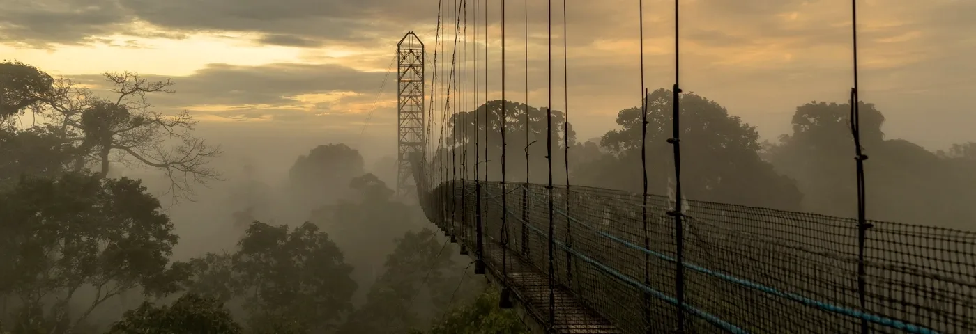Sie beginnen mit den morgendlichen Aktivitäten zwischen 6:00 und 7:00 Uhr. Nach einer Wanderung auf dem Liana Chica-Pfad erreichen Sie den Baumkronenpfad, von dem aus Sie einen spektakulären Blick auf das Regenwalddach und die vielen verschiedenen leuchtend bunten Vogelarten haben. Der Baumkronenpfad wurde als eigenständiger, starrer, hängender Canopy Walk konzipiert und ist weltweit einer der wenigen dieser Art! Der Pfad befindet sich in Sachas Privatreservat, 3,2 km von den Ufern des Rio Napo und 1,6 km von der Lodge entfernt. Der Weg gibt den Gästen die Möglichkeit, das Blätterdach des Regenwaldes aus nächster Nähe und individuelle Weise zu betrachten. Zwei der drei Türme haben alle 12 Meter eine Aussichtssplattform, so dass die Türme für jedermann zugänglich sind. Der Baumkronenpfad ist 36 Meter hoch und 275 Meter lang und bietet den Gästen eine „Vogelperspektive“ auf alle Wunder und Schönheiten, die der tropische Regenwald zu bieten hat. Der Pfad ist als stabiler Steg konzipiert, der es den Gästen ermöglicht, sich locker fortzubewegen und gleichzeitig die spektakuläre Aussicht zu genießen.