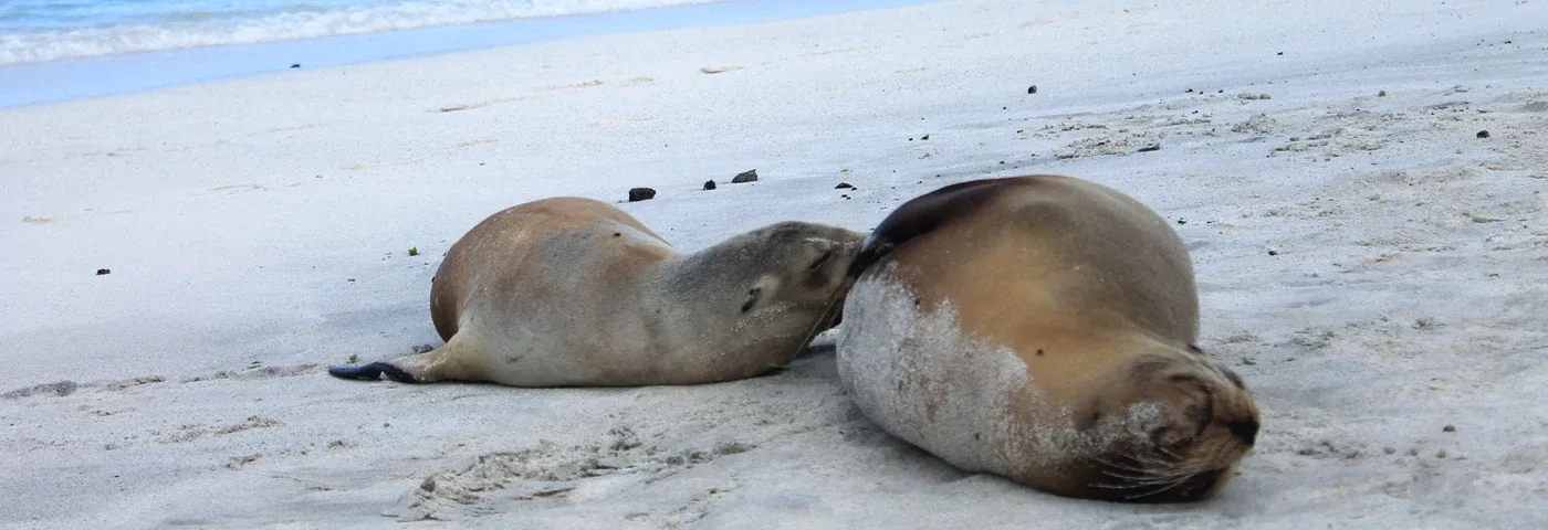 Auf der Insel Santa Fe werden Sie direkt von einer Galapagos-Seelöwenkolonie am Strand erwartet, wo Sie entweder Zeit für ein erfrischendes Bad oder für außergewöhnliches Schnorcheln umgeben von tropischen Rifffischen im kristallklaren Wasser von Barrington Bay haben.